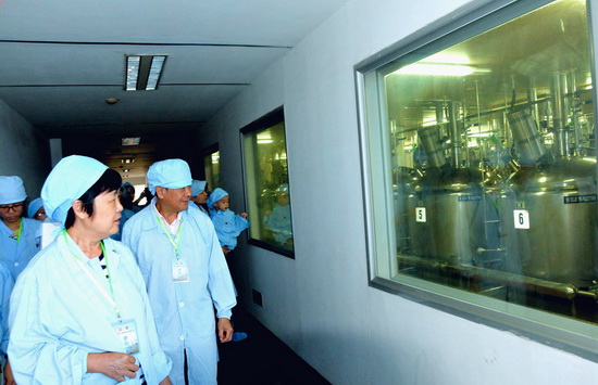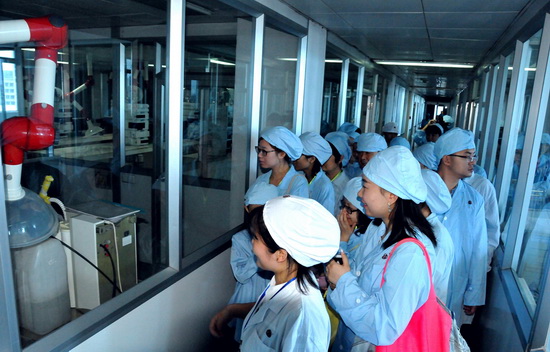 你見過藥品的生產過程嗎?進入生產區域參觀前,市民換上了潔凈服,這讓市民肅然起敬:“這企業質量把關得好啊!”生產工藝是一個企業產品的成功秘密之一,在工作人員的引導下,市民進入了潘高壽“最神秘的區域”——生產區域,一睹潘高壽馳名產品的生產過程。