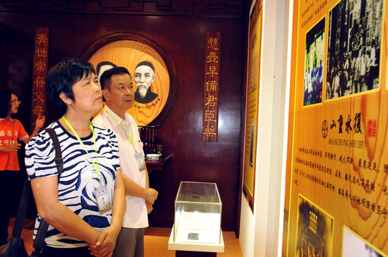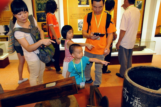 潘高壽文化展覽室展覽了不少潘高壽建廠以來的珍貴歷史文化圖片和資料,古色古香的碾藥器具、盥洗藥缸……很多古老的制藥工具都是現在的小孩子們沒有見過的,由此倍感興趣,不停地向在場的工作人員提問。