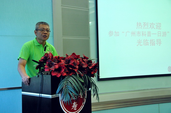 5、白云山潘高壽藥業董事長、總經理楊東升向前來參觀的市民致歡迎詞