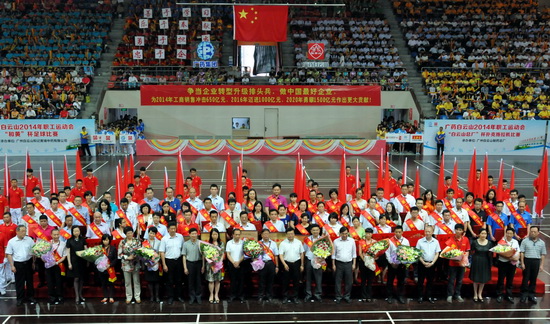 5月26日下午,廣藥集團在二沙島廣東體育館舉行了2014年“五一”表彰暨廣藥白云山職工運動會開幕式,充分展現了廣藥白云山員工團結一致、凝聚力量的集體主義觀念,以及學習先進、建功立業的時代風采和強身健體、英姿颯爽的精神風貌。會上,隆重表彰了王文楚同志等10名“廣藥白云山勞動模范”、李錦云同志等50名“廣藥白云山先進生產工作者”,授予和黃中藥等5個單位“廣藥白云山先進集體”稱號和奇星藥業一車間等10個科室、班組“廣藥白云山工人先鋒號”稱號。