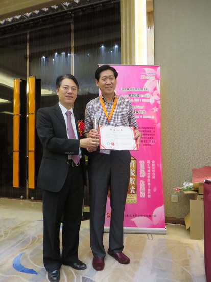 盧其福副總經(jīng)理、總工程師與二等獎(jiǎng)獲獎(jiǎng)?wù)呲w新廣教授合影
