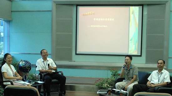 公司領導、主任以上管理人員、職能二支部全體黨員參加。人力資源部高級經理李強主持,生產總監葉耀成、研究所高級經理盧其福以及黃喜梅主任任嘉賓主持。歷時三個小時分四節議題,熱議不斷——第一節:“管理者綜合素質要求”。涉及團隊合作能力,如何增強影響力,激勵、傾聽能力的運用以及接受批評等;第二節:如何做一名優秀的管理者,有關執行力、是非觀、大局觀的問題;第三節是管理(領導)者談領導藝術。關于方法、技巧、人格等的細節……
