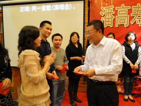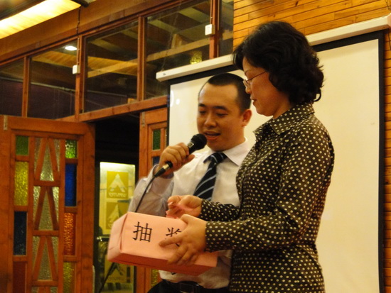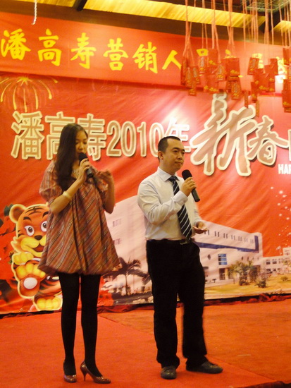晚宴上,胡小華、徐鴦、戎全剛、張世欽等激情獻唱、熱舞助興,臺上節目精彩,臺下歡聲笑語,樂也融融。不時穿插的游戲、抽獎,讓人既緊張又興奮。業務人員常年出差在外,今天家人、戰友歡聚在一起,感受著潘高壽這個大家庭的溫暖與祝福,四處都彌漫著溫馨氣氛。戰略發展部、銷售部合唱的《朋友》、《真心英雄》、《明天會更好》都是他們對團隊的情誼、對公司祝愿的最真摯表達。晚宴在領導班子合唱《同一首歌》中走向高潮,就如歌詞所言,我們手拉手共同走過了風雨的歲月,相信在公司上下的共同努力下,我們會有更好的明天!