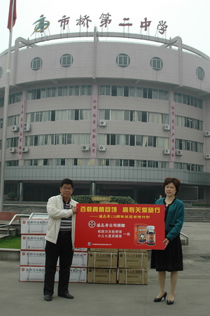“百載真情回饋,高壽關愛隨行”,籍潘高壽成立120周年之際,我司開展回饋社會的關愛行動。4月28日,公司黨委書記鄭楠、市場部副經理戴梅一行來到了省一級中學番禺市橋第二中學慰問,針對長期困擾教師的嗓子干、喉嚨痛等問題,向教師們送上了一批蛇膽川貝枇杷膏、七星茶糖漿,以表關愛之情。