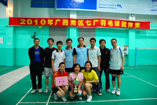 廣州藥業南區七廠第五屆(2010)羽毛球混合團體賽于4月30日在海珠區創傲體育運動場館落下帷幕,來自集團下屬南區七廠(藥業)的7支球隊參加了角逐,我司羽毛球興趣小組發揮出色,在本次比賽中取得了南片片區團體第一名的優異成績。