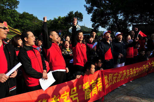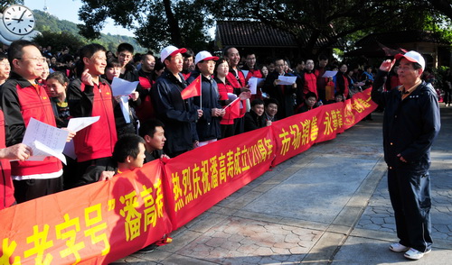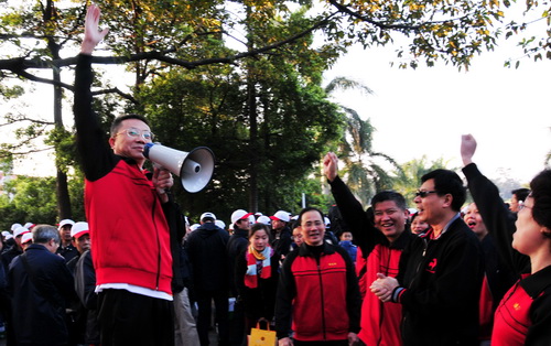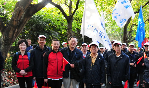 辭舊迎新,潘高壽,“攀高壽”。一早,由公司工會、黨辦組織的登山活動的人群就集結在白云山腳,員工及家屬上千人秩序井然,由公司領導引領前行,向山頂進發。打著“弘揚亞運精神”、“造福社會百姓”、“市場銷售、勇攀高峰”、“創造一流藥品”等橫幅。員工、家屬們個個精神抖擻;口號聲、歌聲響徹山頂公園、摩星嶺。領導領唱、員工、家屬齊和應,魏大華董事長總經理、鄭楠黨委書記等班子成員與員工家屬們融為一體,歌嘹亮、聲威壯,場景感人。而最令人矚目和動容的是,廣藥集團董事長、黨委書記楊榮明,副總經理施少斌、工會副主席寧志雄的光臨,一齊吶喊、一起高歌,為員工們加油、鼓勵!