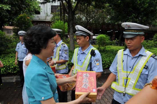 盛夏炎炎,暖暖人心。8月10日下午,潘高壽公司與市橋街道辦事處一行慰問堅守崗位的市橋交警大隊第一中隊交警以及服務在“創文”第一線的番禺志愿服務隊,送上一批涼茶,送去暖暖的關愛之情。