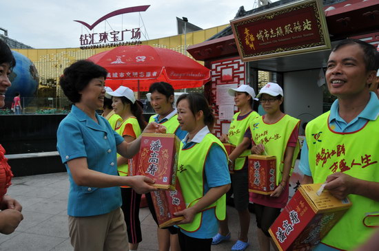 潘高壽鄭楠黨委書記、市橋街道辦事處金主任一行來到市橋交警大隊第一中隊所轄下馬路上,向執勤的交警、交通協管員送上解暑涼茶,向為暢通城市交通而辛勤工作的交警們表達敬意。又來到八月廣場,向幸福廣州城市志愿服務站的志愿者們送上涼茶。同時,傾聽志愿者們服務社群的新鮮事,為他們無私的奉獻精神所感動,也為他們鼓勵打氣,齊勉力,為廣州創建文明城市揮灑汗水。