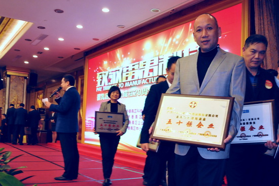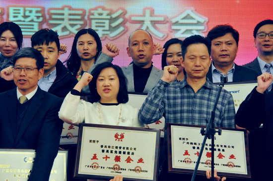 2017年3月9日夜,由廣州市番禺區(qū)廠商會(huì)、廣州市番禺區(qū)企業(yè)聯(lián)合會(huì)、廣州市番禺區(qū)中小企業(yè)協(xié)會(huì)聯(lián)合舉辦的主題為“致敬番禺制造”的番禺區(qū)廠商會(huì)成立20周年暨表彰大會(huì)在番禺賓館隆重舉行。各級(jí)領(lǐng)導(dǎo)、會(huì)員單位、企業(yè)代表逾700人歡聚一堂;領(lǐng)導(dǎo)致辭、回故展望、文藝表演、表彰先進(jìn)等有聲有色。“振興實(shí)體,不忘初心,創(chuàng)新發(fā)展”50家番禺區(qū)先進(jìn)制造業(yè)50強(qiáng)企業(yè)代表在臺(tái)上莊嚴(yán)宣勢(shì)!發(fā)出時(shí)代強(qiáng)音!令人矚目振奮。我司分獲“番禺區(qū)先進(jìn)制造業(yè)50強(qiáng)企業(yè)”、“廣州市勞動(dòng)關(guān)系和諧企業(yè)” 稱號(hào)。副總經(jīng)理劉永忠代表我司出席大會(huì)并上臺(tái)領(lǐng)獎(jiǎng)。